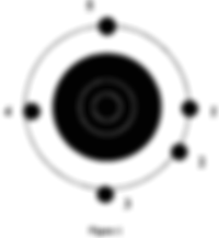 Consider Figure 1, an N-SSA musket or carbine target into which five shots have been fired. Of course, we may fire five inaccurate shots into the target for reasons that have nothing to do with involuntary movements if the firearm and ammunition combination used is inaccurate or if we have problems with basic skills. On the other hand, the poor shots may all be the results of involuntary movements. However, it is uncommon to flinch or jerk so as to place the shots at different areas of the target during the course of shooting one target. Refer to each shot numbered in Figure 1: